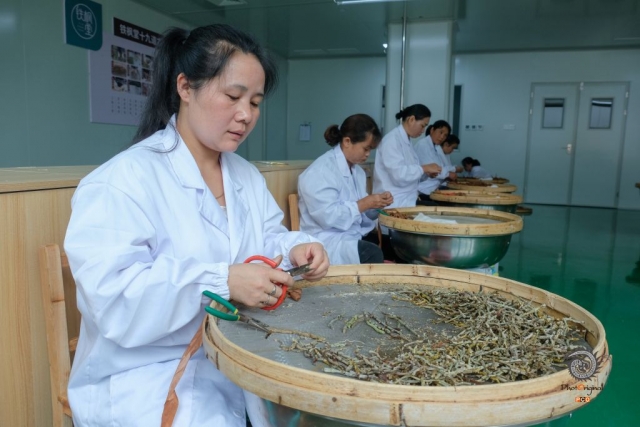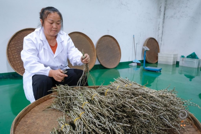 6石斛加工-杨胜屏 摄13985807281近年来,锦屏发挥山地资源优势县石斛全产业链 ,除了扩大面积、提升品质,石斛深加工产品也在不断丰富。除了石斛景观外,通过精加工,生产出了优质铁皮石斛枫斗、石斛饮片、石斛茶、石斛酒等,形成了一条石斛全产业链。(6/9)