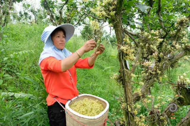 4采摘石斛花-杨胜屏 摄13985807281近年来,锦屏发挥山地资源优势县石斛全产业链 ,除了扩大面积、提升品质,石斛深加工产品也在不断丰富。除了石斛景观外,通过精加工,生产出了优质铁皮石斛枫斗、石斛饮片、石斛茶、石斛酒等,形成了一条石斛全产业链。(4/9)