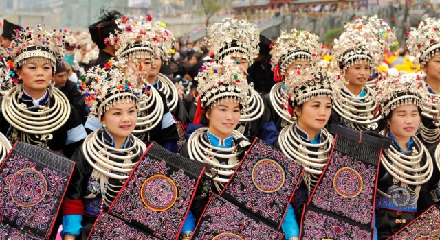 《绣》+杨晓海+18785577896_副本2016年10月1日,在贵州省锦屏县举行的文书文化节中,侗族妇女在展示侗绣。