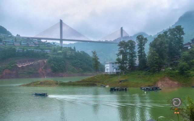 《南埃风情》+杨梅镇 摄于剑河+13638076556(DSCF4738)剑河县南埃村剑榕高速南埃大桥横跨南北,给南埃村增加一道亮丽的风景,游客常到这里旅游,观赏大桥。 作者:罗子钧 电话:13985291365(1/1)