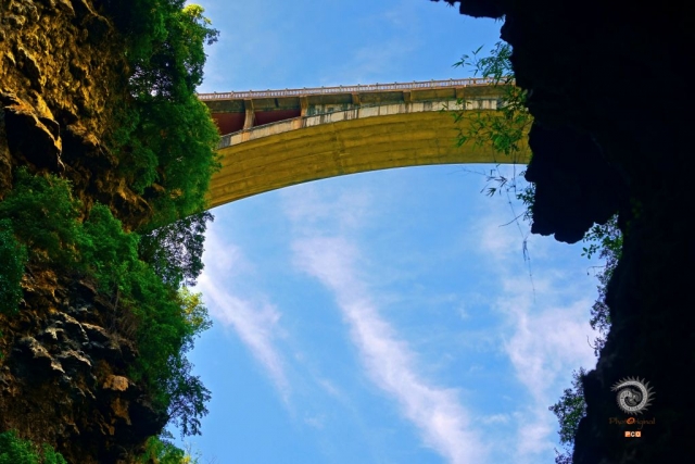 一条不起眼的传统拱桥,轻轻松松地飞越远近有名的大峡谷。