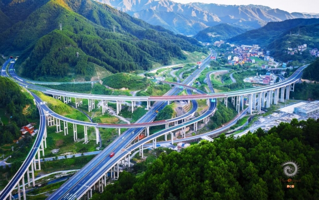 《岑松高速枢纽建设》组图5(DJI_0032)岑松寨头枢纽互通北接思剑高速、南通剑榕高速,东西方向承接沪昆高速。该项目在建设时,采用了“上跨”的方式。其中对沪昆高速上跨四次,对320国道上跨三次。总投资达4亿元,目前已完成通车。 作者:罗子钧 电话:13985291365(6/7)