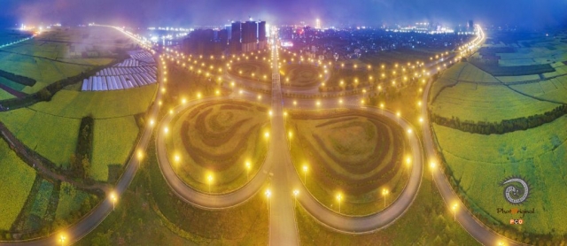 拍摄于罗平县城万峰路与江召公路交叉位置,该位置是一个特大形交通枢纽网,每年2月底,这里油菜花开,夜色与金色油菜花相映成趣。拍摄时候恰好遇到了云海,油菜花,夜景三元素。