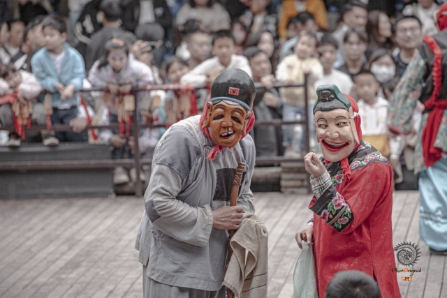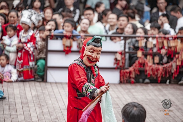 IMG_2085傩戏是国家非遗名录,傩戏里面的祈福消灾,上刀山,牵姻缘等戏曲皆为主导.傩的表演者古称巫觋、祭师,被视为沟通神鬼与常人的“通灵”者,表演时装扮上各种服饰面具,模仿与扮演神鬼的动作形神,借神鬼之名以驱鬼逐疫,祈福求愿。 贵州民族民间傩戏系统,主要有两个系列,三个层次。具有民族多、品种多、层次多、分布广、保存完整等特点。(12/12)