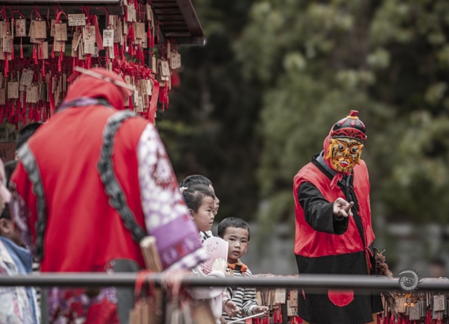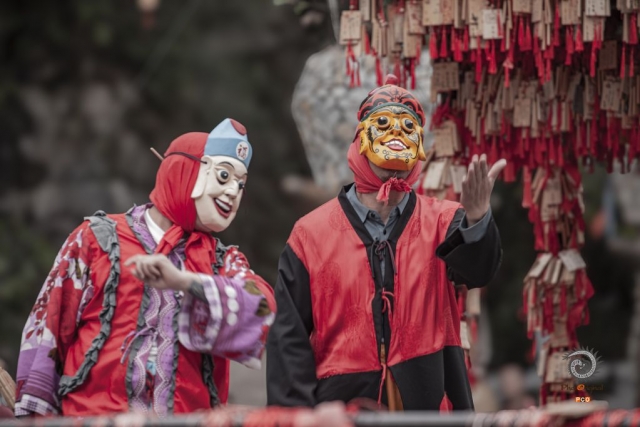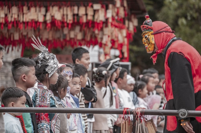 IMG_1977傩戏是国家非遗名录,傩戏里面的祈福消灾,上刀山,牵姻缘等戏曲皆为主导.傩的表演者古称巫觋、祭师,被视为沟通神鬼与常人的“通灵”者,表演时装扮上各种服饰面具,模仿与扮演神鬼的动作形神,借神鬼之名以驱鬼逐疫,祈福求愿。 贵州民族民间傩戏系统,主要有两个系列,三个层次。具有民族多、品种多、层次多、分布广、保存完整等特点。(5/12)