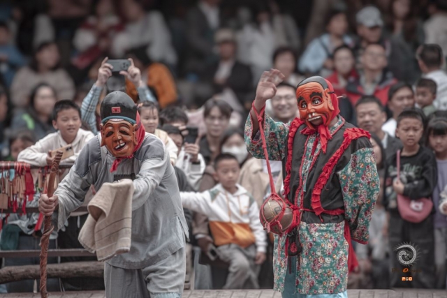 IMG_2024傩戏是国家非遗名录,傩戏里面的祈福消灾,上刀山,牵姻缘等戏曲皆为主导.傩的表演者古称巫觋、祭师,被视为沟通神鬼与常人的“通灵”者,表演时装扮上各种服饰面具,模仿与扮演神鬼的动作形神,借神鬼之名以驱鬼逐疫,祈福求愿。 贵州民族民间傩戏系统,主要有两个系列,三个层次。具有民族多、品种多、层次多、分布广、保存完整等特点。(7/12)