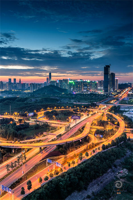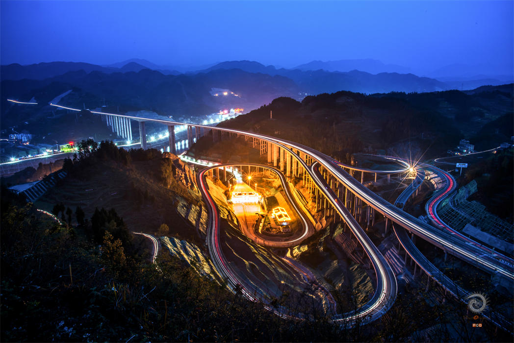 贵州省贵阳市观山湖区立交桥夜景--唐哲