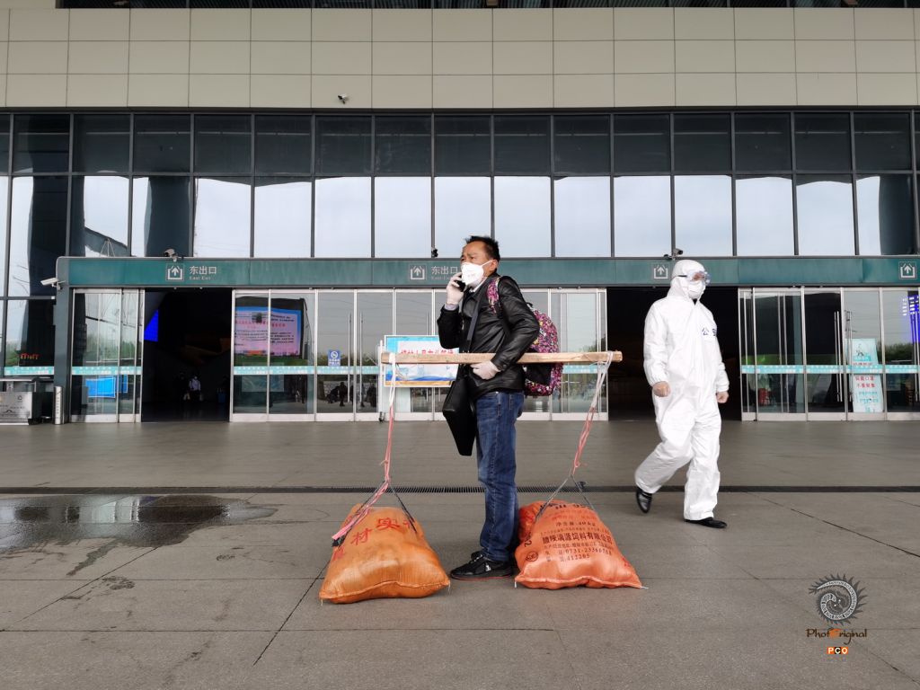 2020年3月31日,武汉火车站,刚刚回到武汉的乘客。曹旭 摄
