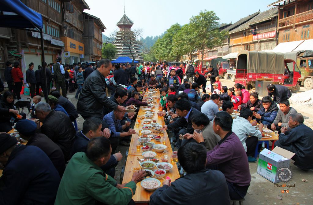 《侗族长桌宴》王士波2012年摄于黔东南苗族侗族自治州黎平县肇兴侗寨。