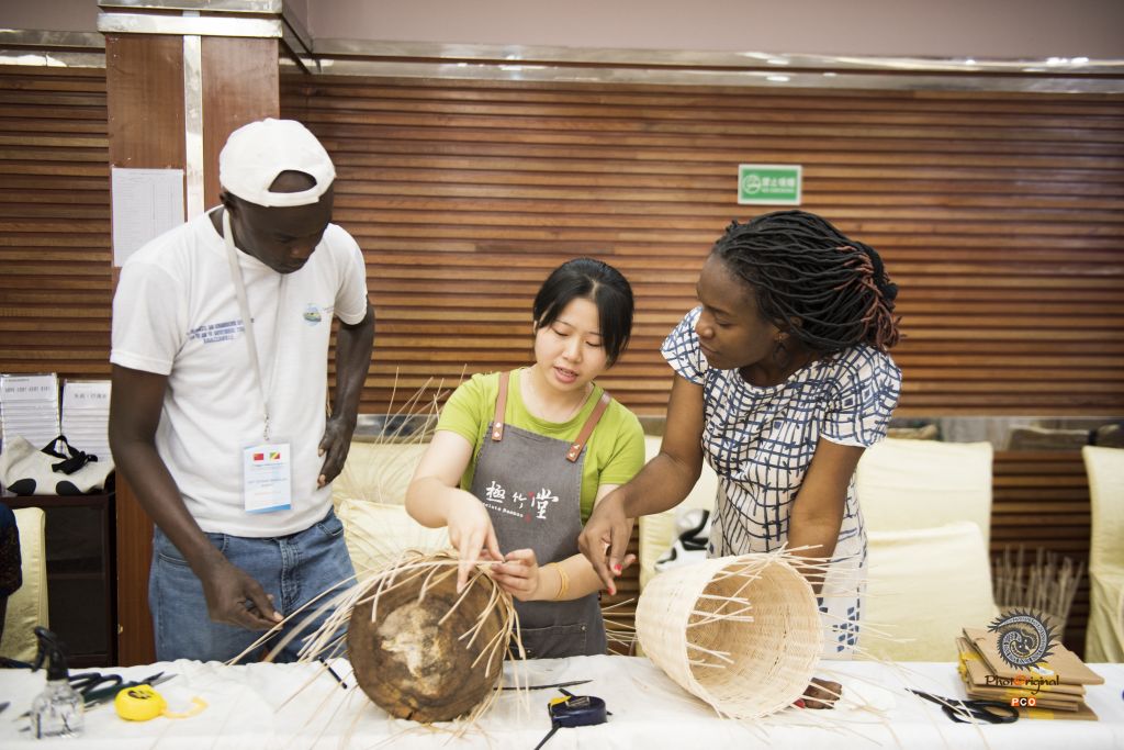 赤水竹编师傅向刚果(布)学员辅导竹编技巧 王茂祥 摄