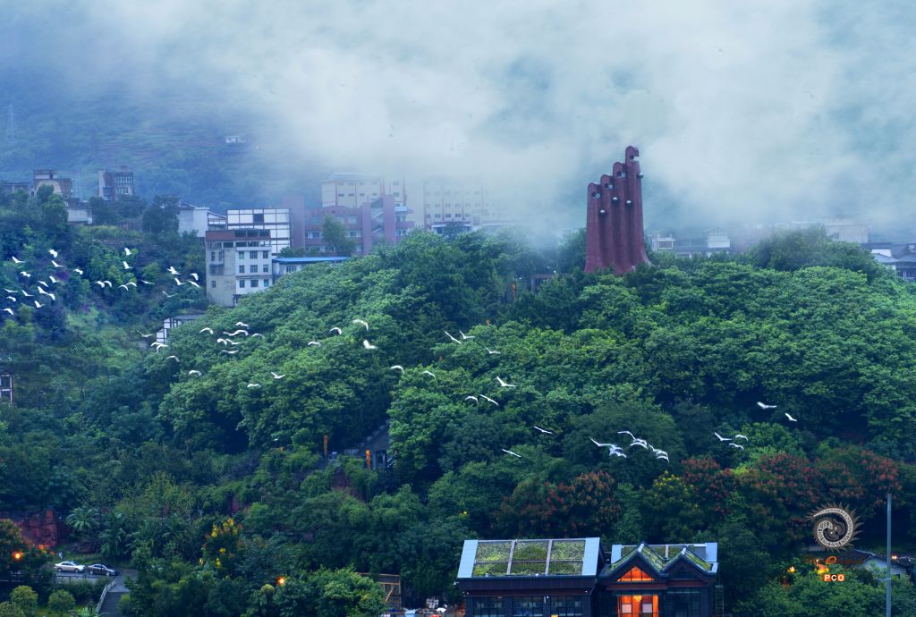 仁怀市茅台镇赤水河上游-围绕四渡赤水纪念园飞翔的鹭群-付树湘-摄于2018年9月21日