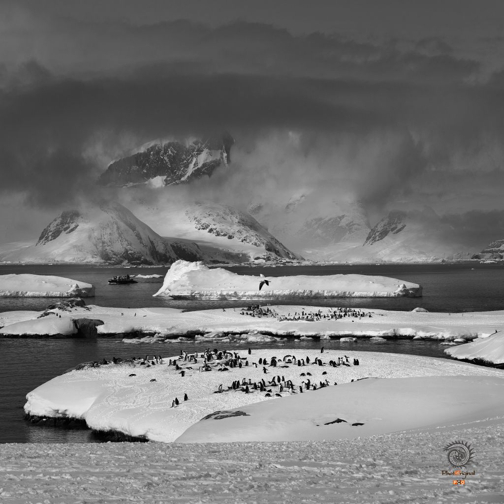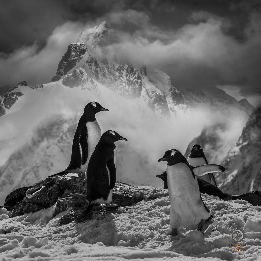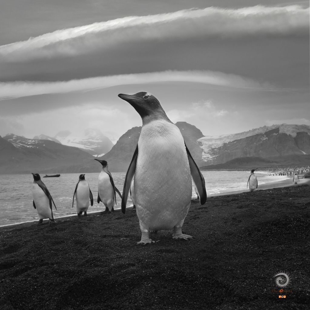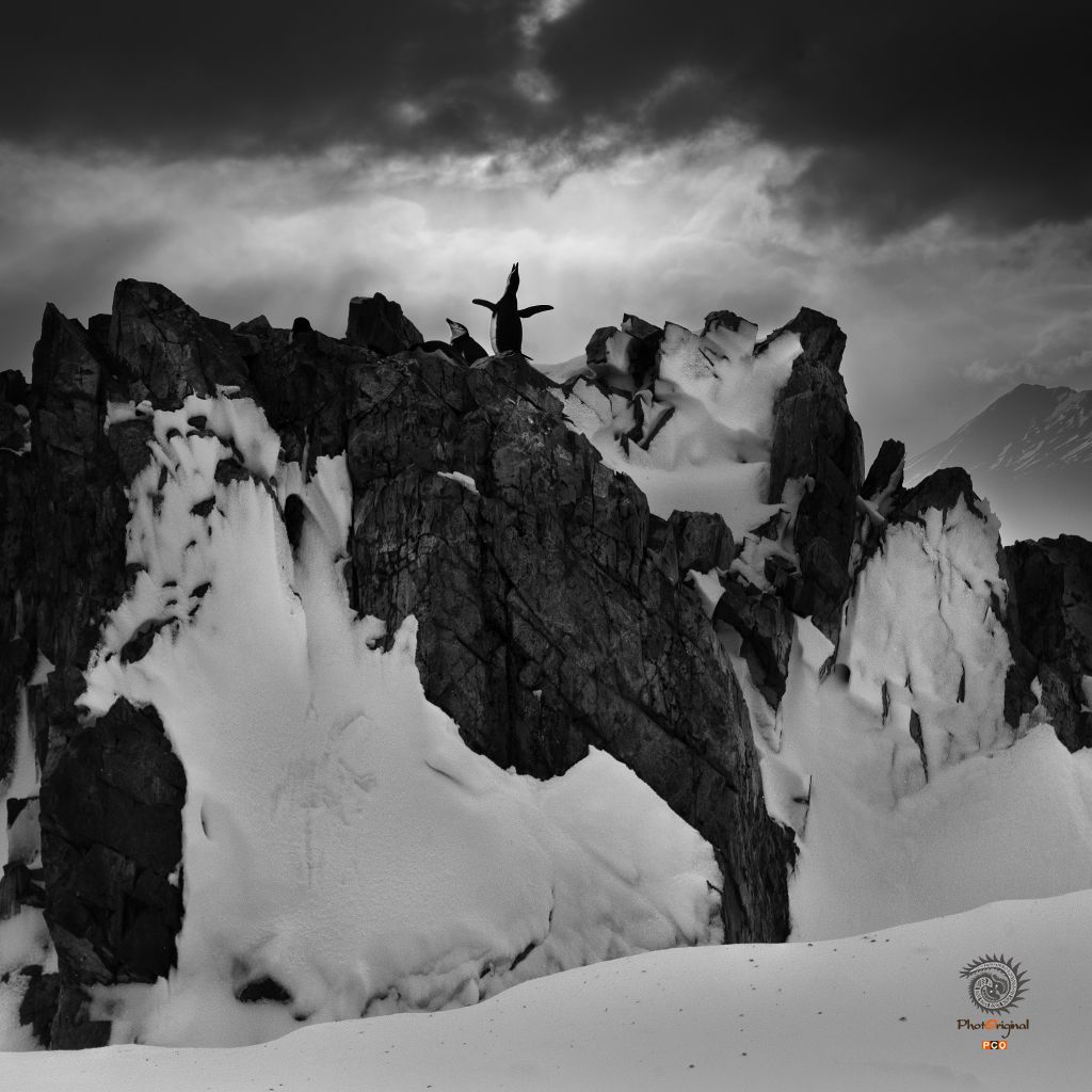 南极,纯净的、神秘的大陆。南极的生态环境在《南极条约》的保护下企鹅数量得到恢复增加,保护它们就要了解它们,2014年11月—12月我历时28天行摄南极洲的福克兰群岛、南乔治亚岛、南设得兰岛和南极半岛。尤其南极半岛冰与雪覆盖了岩石山地,只有帝企鹅、阿德利企鹅、金图企鹅、帽带企鹅能生存,它们才是南极主人。南极的冰山、天空和云朵,空灵之美,少有甚至独有之美,震撼我的心灵。我用黑白影像来艺术表达南极主人企鹅与冰山天空环境之美,并希望通过这些影像让人们了解南极,保护动物,保护环境,保护地球,保护我们共同的家园。
