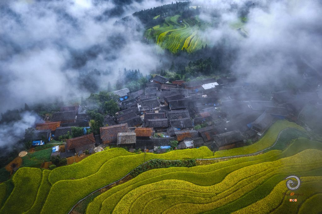 《清晨大雾下的苗寨》侯凌,2015年4月摄于都匀市三都县怎雷村。