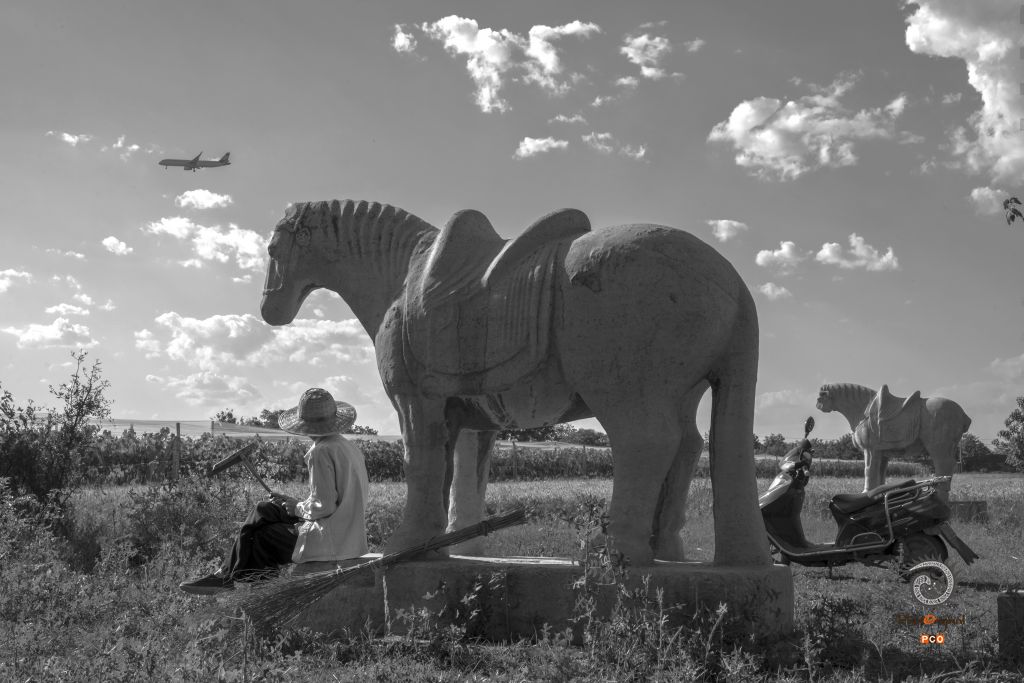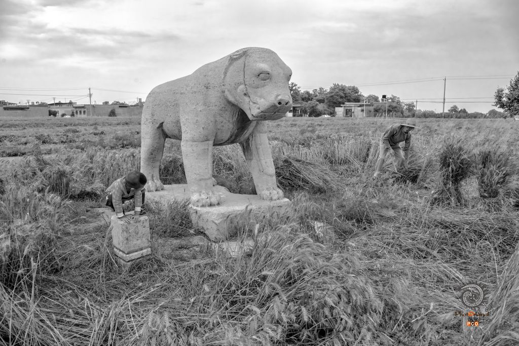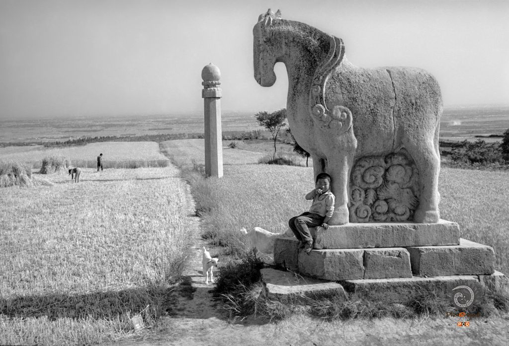 在中国陕西关中地区,蒲城县由东向西,经富平、泾阳、礼泉直至乾县共六县的渭北高原上,一字型分布排列着唐代帝王的十八座陵墓。这些陵墓前的石雕、石马、石人各不相同,它们代表着当时年代的文化,每一尊石雕背后都有一部动人的故事,承载着厚重的历史。经历了漫长的岁月洗礼,长年累月的风雨侵蚀和人为损毁,石雕本已沧桑的面容伤痕累累,但它们仍然忠实地守卫在唐陵前,静观风云变幻,似乎在等待有人们来关注自己往昔的辉煌。邓海2012年至2017年摄于陕西关中地区。