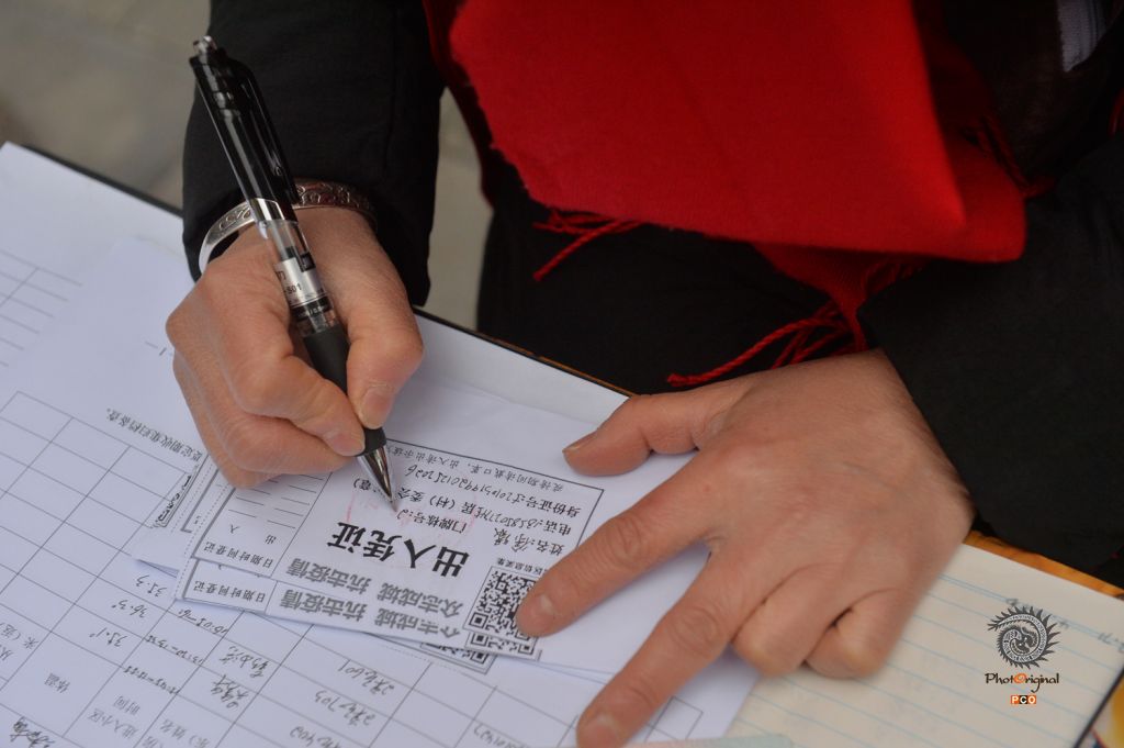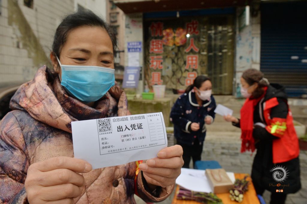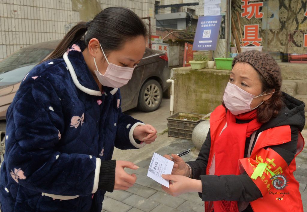 《疫情防控》乔启明2020年摄于贵阳市。 2月7日,贵阳市大营路街道办事处杨柳湾辖区一工作人员在给一居民办理“出入凭证”