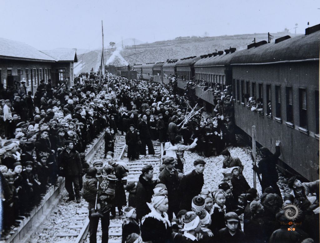 1972年10月,湘黔线开通后火车经过黄平谷陇镇的热闹场面