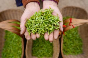 《布依族妇女展示采摘的春茶》