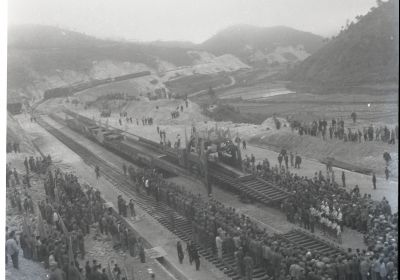 1972年10月,湘黔线开通后火车经过黄平谷陇镇的热闹场面